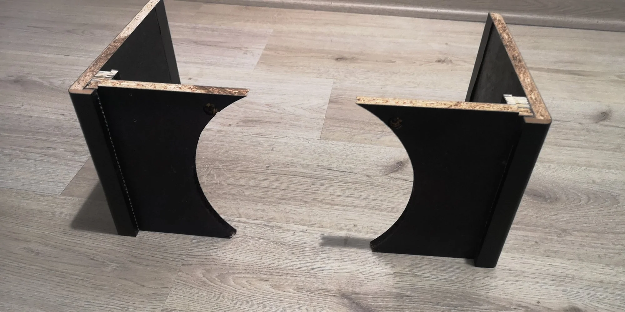 Hoparlörü söktükten sonra Board u da gövdeden ayırdım. 4-5 vida tutuyor. Marangoz a gittim tezgah testeresi ile mükemmel bir şekilde 2 ye ayırdı. Aradaki parçayı attım. Ağaç tutkalı ile 2 parçayı birbirine yapıştırdım. Ön kısımdaki hoparlörü gizleyen kısım bir kontrapilak ile oraya tutturulmuş. Onu da uygun şekilde kısaltıp tekrar vidaladım. Logolor vs yi de kafama göre vidaladım. Board un muhafazasının arka kısmına jack girişi için delik açtım. Kaliteli bir jack alıp eskiden hoparlöre giden + ve - yi jack a lehimledim.