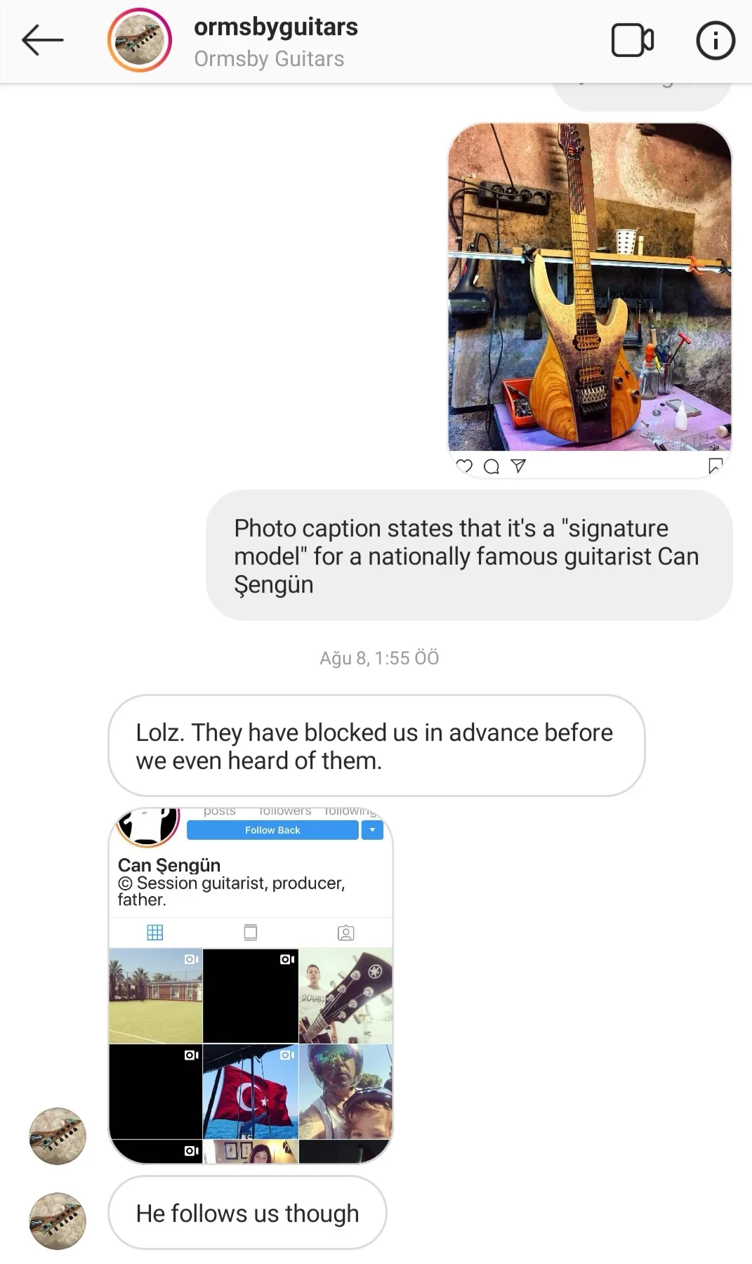 2000li yıllarda Alphan abi Metropol Müzik'te çalışıyordu, (Tünel'e inmeden sağ taraftaki son bina, büyük korkunç simsiyah bi yapı, zamanında Yamaha ve Gibson'un distribütörüydüler ama Gibson getirmiyorlardı 😂 sadece Epi) geyik konusunda kendisinin üstüne yoktu, her gün daha acayip bi şeyler anlatırdı, bi gün Anathema'ya gitar sattığını, bi gün Kore JEM555 gitarının Japon JEM7Vleri tokatladığını... Arada Taksim'de işim olduğunda gitarları, pedalları falan ona bırakırdım. O zamanlar gitar üretimi konusunda sohbet ettiğimiz de olurdu, ben Hendrix Guitars yap markayı deyince o isim tescillidir diye olmaz falan derdi, kim takar tescili, sanki Gibsonla mı yarışacaksın diyordum ben de. Son 15 senedir falan görmedim kendisini ama dediğini başarmış olması şaşırtıcı. Hiç bal yapacak bi arıya benzemiyordu açıkçası. 😅