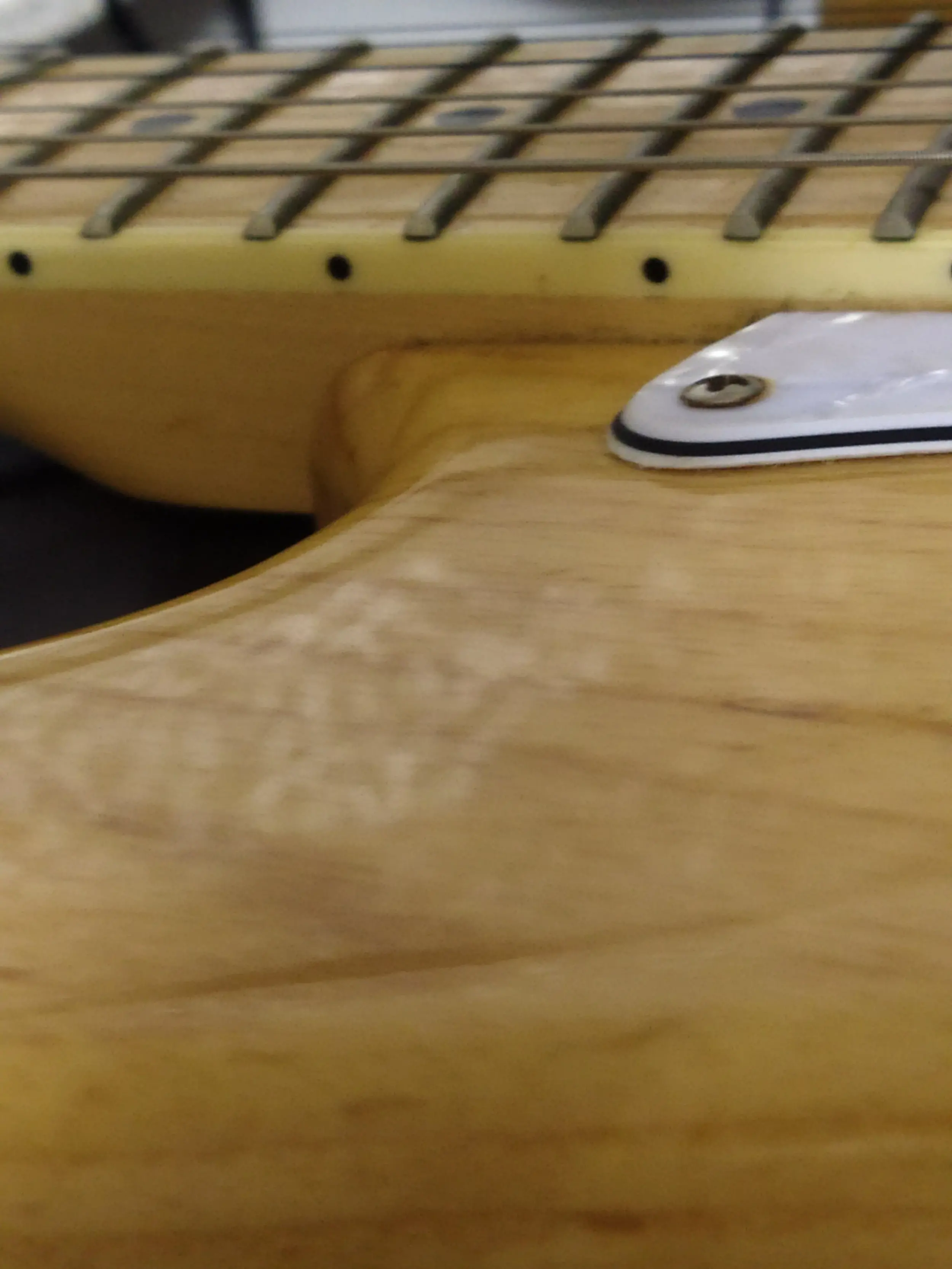 Telleri iyice gevsetip kapo ile ust perdelerden birine tutturun. Sonra tum sap baglanti vidalarıni söküp sapi ayırın ve sap cebinde çapak, pürüz varsa temizleyin. Eger sap cebine shim denen yükseltici parçalardan koymuşlarsa atmayın ama varsa da tekrar nereye ve niçin konacagini biliyor olmalısınız. Zira pozisyonu dramatik etki yaratır sap ayarında. Genelde cebin en dip kısmına ortalayarak konur. Saptaki gevşemiş vida deliğine uzunlamasına ikiye böldugunuz kürdan parçalarından koyup, sapi dikkatlice yuvaya guzelce oturtup vidalari dengeli olarak sıkın. Sonra telleri akort edip perdelerde cizlama var mi, teller alt perdelerde yükseldi mi yoksa fazla mi alcaldi kontrol edin. Sorun yoksa işlem tamam demektir, sorun varsa da ya ustaya verin gitari ya da sap açısı ayari ile ilgili araştırma yapmaya başlayın.