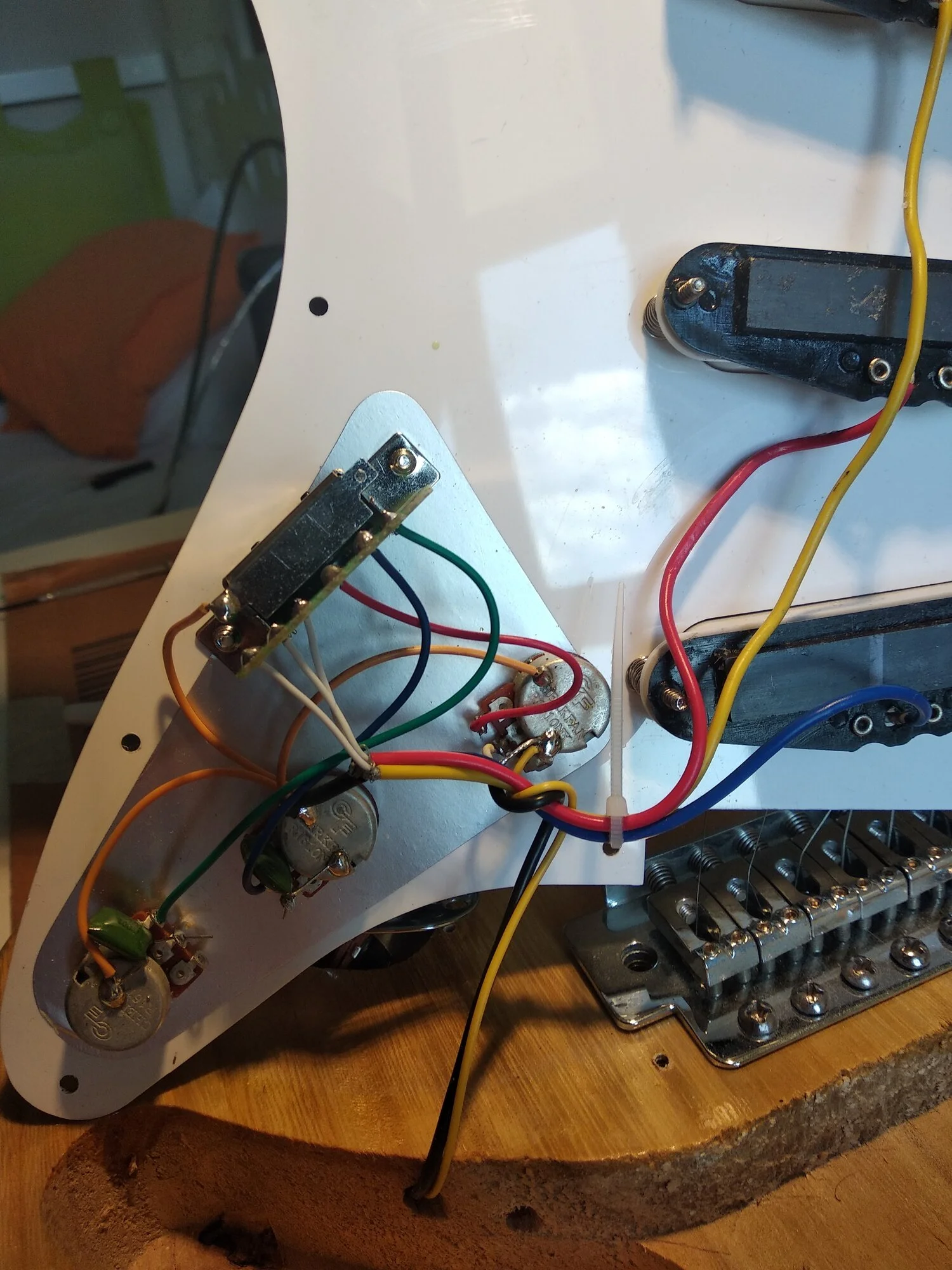 Merhabamerhaba ben Kemal Bugün yeni bir elektro gitar aldım ikinci el fiyatı gayet uygundu gitarı amfiye taktığın zaman çalışmadığını keşfettim bunun üstüne gitarın pena korumasını kaldırarak altında kopuk kablo var mı ona bakmak istedim evet el yapımı olduğundan dolayı biraz daha farklı bir sarın yapmışlar bu nedenle tam olarak neyin nereye gelmesi gerektiğini anlayamadım gitarın önceki sahibine sordum önceki sahibi bana bir lehimin attığını söyledi ellerinde lehim tabancası olmadığı için o dönemde Yapı olmuşlar ve süs olarak Durmuş öyle sizden ricam açacağım fotoğrafta neyin nereye lehimlenmesi söyleyebilir misiniz lütfen ayrıca daha daha farklı bir fotoğraf çekmem gerekiyorsa bunu da belirtirseniz şekerim hepinize teşekkürler.