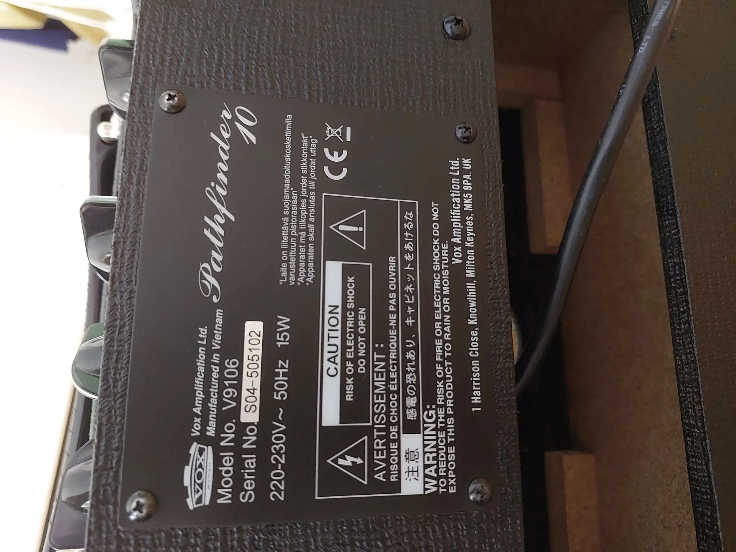 Vox'tan beklenen sıcak İngiliz sesi, 15 Watt'lık Pathfinder 10 amfisinde, modern high gain kabiliyetini de ekleyerek hayat buluyor. Bu 15 Watt'lık 6.5" x 1 hoparlöre sahip combo, Vox'un klasik görünümünü yansıtmaktadır. Gain Kontrolu amfinin genel preamp gain'ini ayarlar ve temiz tonlardan çılgın tonlara geniş yelpazede ses alınabilmesini sağlar. Bunun yanında Clean/Overdrive svici ile daha da geniş yelpazede ses elde edilebilir. Treble, Bas ve Volume kontrolları ile yüksek ve düşük frekanslar, ayrıca genel ses kontrol edilebilir. Headphone/Line jakı sayesinde sessiz bir şekilde çalışılabilir, kayıt yapılabilir. Özellikler Devre yapısı: Solid-State Çıkış: 10 Watt RMS Hoparlör: Vox Bulldog x 1 (6.5", 8 ohm) Kontrollar: Gain, Treble, Bass, Volume, Clean/Overdrive svici, Power On/Off Giriş: Input jakı Çıkış: Headphone/Line Out jakı Boyutlar: 380 x 260 x 170 mm. Ağırlık: 4.8k