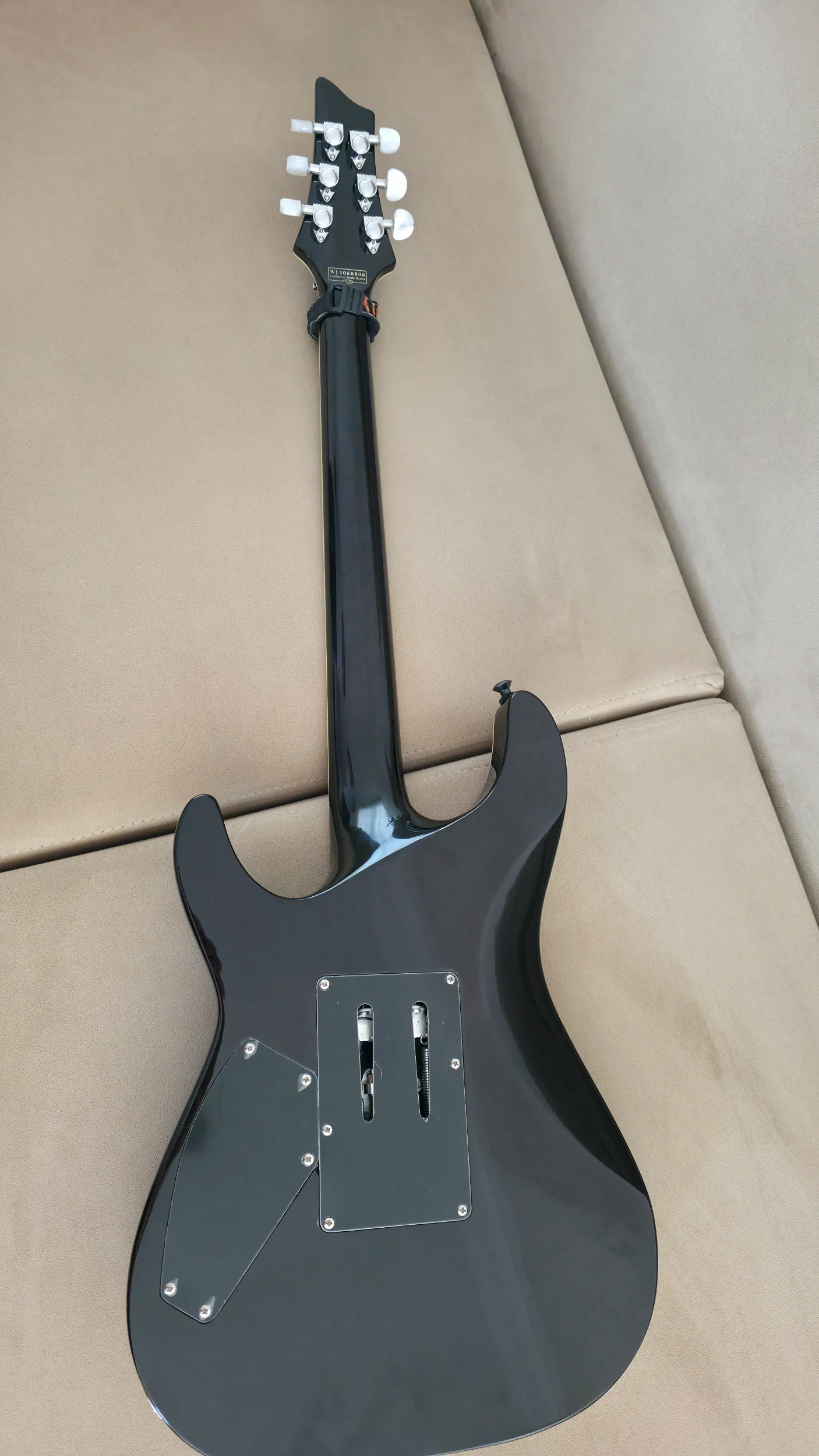 Maun Gövde, Maple Sap, Ouilted Maple Kaplama, Abanoz Tuşe. Set-Neck Bağlantı, Grover Burgu, Orijinal Floyd Rose ve EMG 57/66 Set ile istediğiniz her şeyi yapabileceğiniz bir gitar. Ayrıca 100 Euro değerinde Steve Vai'nin de bazı gitarlarında kullandığı Stabilizer modifiyesi mevcut. (Google da araştırabilirsiniz). Floyd Rose kolu mevcuttur.