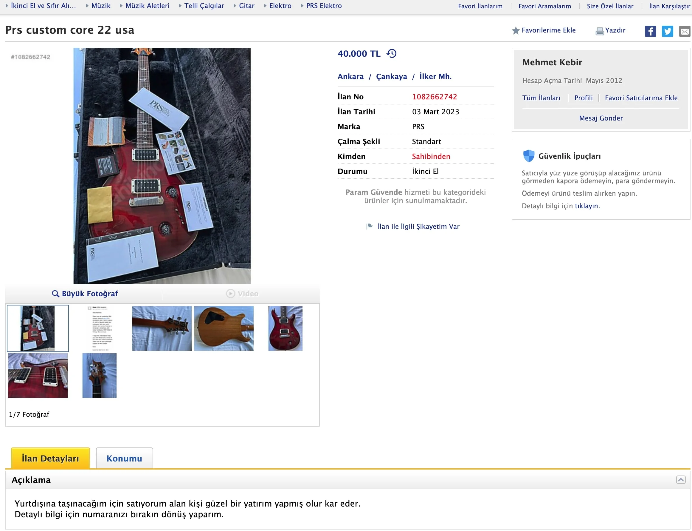 Bizzat şahidim. Gitar boyalı. Teyitli, doğru bilgidir.Gitar tamamen yeniden boyanmıştır. Satıcı bu bilgiyi önce paylaşmıyor, sonrasında kanıtlarla valide ettiğinizde de it herif diyip mahkeme ile tehdit edip engelliyor. Bilginize.